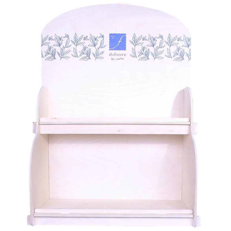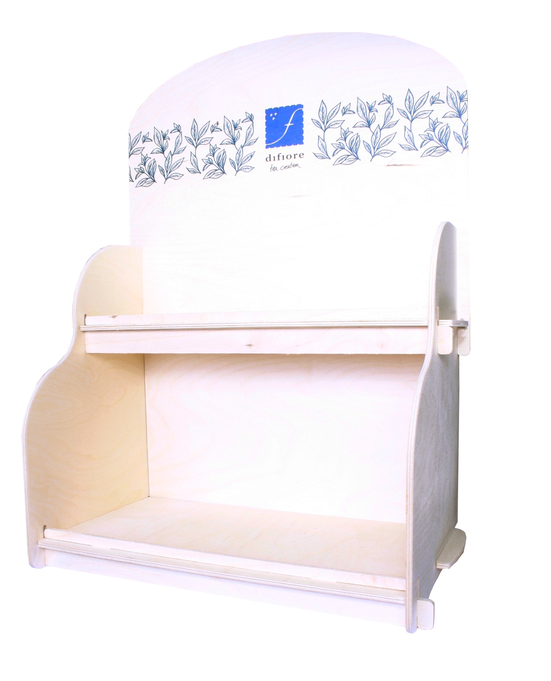 Einzelpreis / proDer elegante Naturholzdisplay für die „difiore tea creation“ Tees ist zweistöckig und kann für bis zu 8 Sorten Tee aufnehmen und präsentieren die Dosen in einer natürliche Art. Der Tee Display wird einfach zusammengesteckt und wird zerlegt angeliefert.